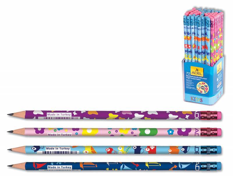 Карандаш чернографит. Adel KID`S 203-1151-000 HB ластик корпус ассорти (фио/роз/гол/син) рисунок