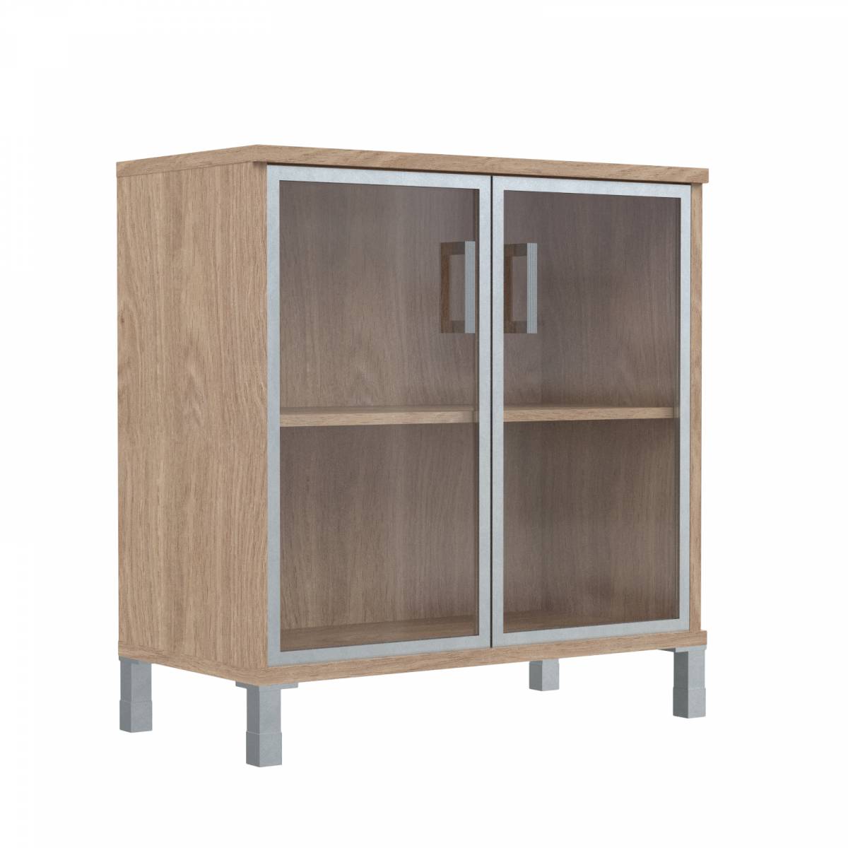 Шкаф низкий со стеклянными дверьми в AL-рамке B 410.4 Дуб Девон 900х450х920