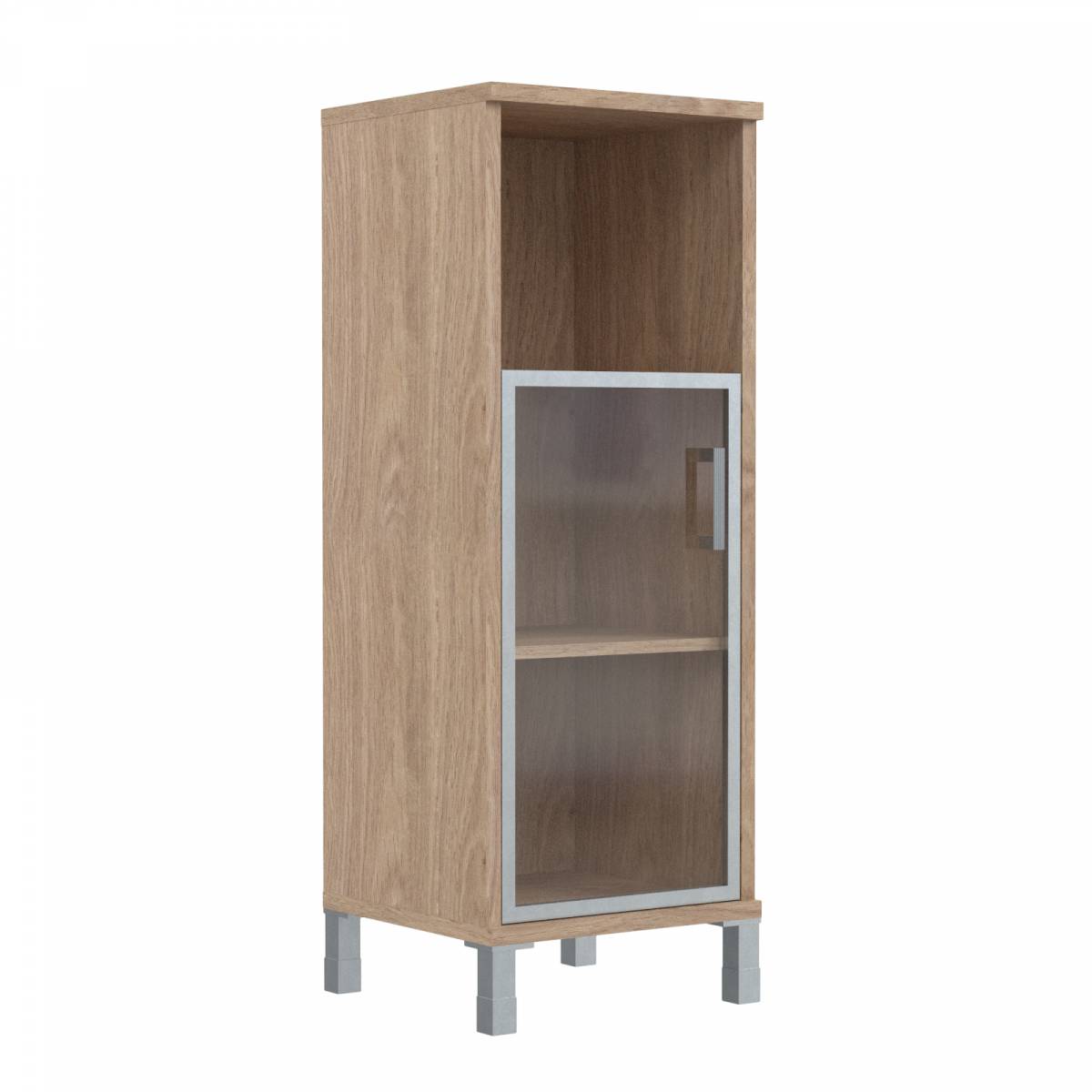 Шкаф-колонка низкая со стеклянной дверью в AL-рамке B 411.4(L) Дуб Девон 475х450х920